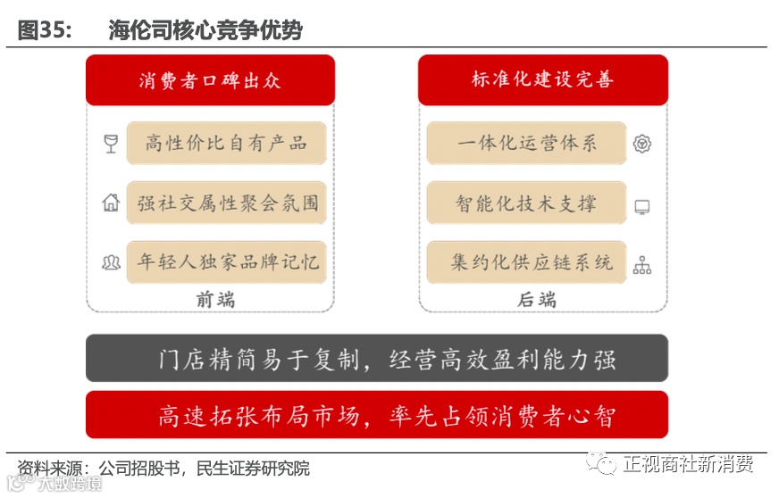 门店模型精简高效,拓张模式标准成熟。围绕“小前端、大后端”的核心,海伦司 率先完成直营一体化建设,利用标准化流程、数字化中控和集约化供应链简化门店 经营,实现降本增效。