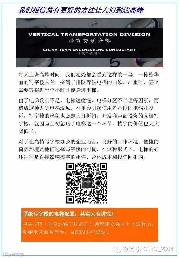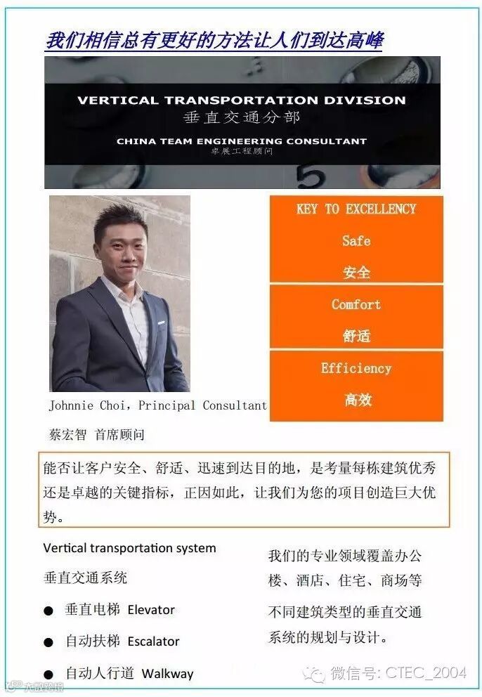 卓展垂直运输专业团队,从事电梯 / 扶梯咨询,并专注于设计、改造 / 优化、技术规范、招投标、合约执行、调试和验收服务。我们经验丰富的专业人员,了解垂直运输的独特需求:节能高效、可用性、可靠性和可维护性,并能帮助您保护您的乘客,以及确保你的投资达到最佳的经营效益!