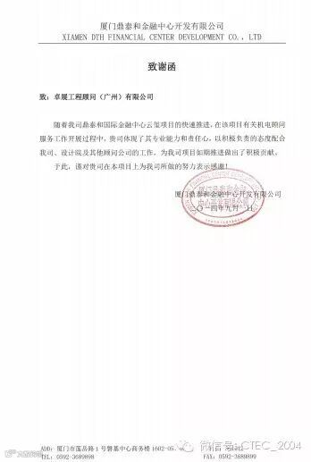 随着鼎泰和国际金融中心云玺项目的快速推进,卓展在该项目的机电顾问服务工作开展过程中,凭借其专业能力和责任心,以及积极负责的态度获得业主的认可。