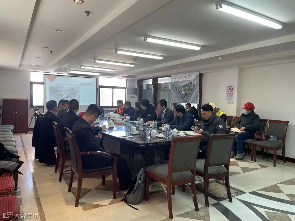 2022年1月11日下午,锦江集团董事长赵奇率职能部门到上海岩花园项目进行工程调研。筹建处主任张凌志、副主任王奇懿、四建集团总裁盛玉涛、总裁助理陈朝辉、同济监理技术副总常明陪同调研。