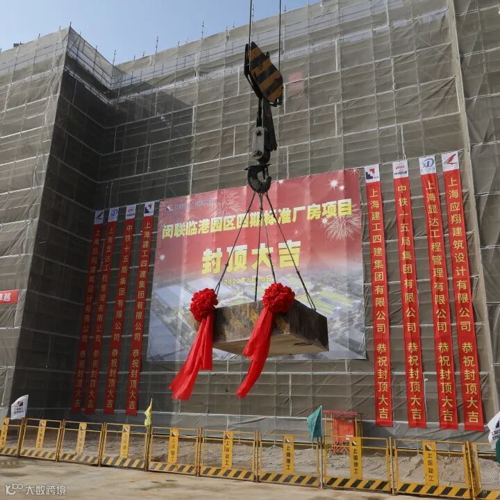 2022年01月18日,闵联临港园区四期标准厂房项目按计划完成上部结构封顶,项目举行结构封顶仪式,地产闵虹执行董事、总经理冯晓明,地产闵虹副总经理、闵联临港公司董事长刘焙;闵联临港公司总经理宋冰;上海建工四建集团有限公司第一工程公司党总支书记陈宏欣;中铁十五局集团上海指挥部指挥长马磊,中铁十五局集团上海指挥部副指挥长杨健伟,中铁十五局集团上海指挥部副指挥长胡静修;上海显达工程管理公司总经理吴发展;上海应翔建筑设计公司总经理吴巍出席本次活动。