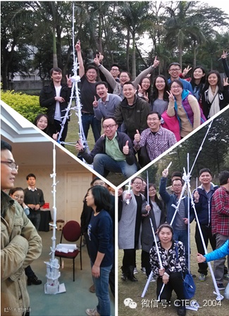 游戏二:环保纸建楼,只有环保A4纸,没有任何其他工具的情况下,团队合作建造出最高的塔楼
