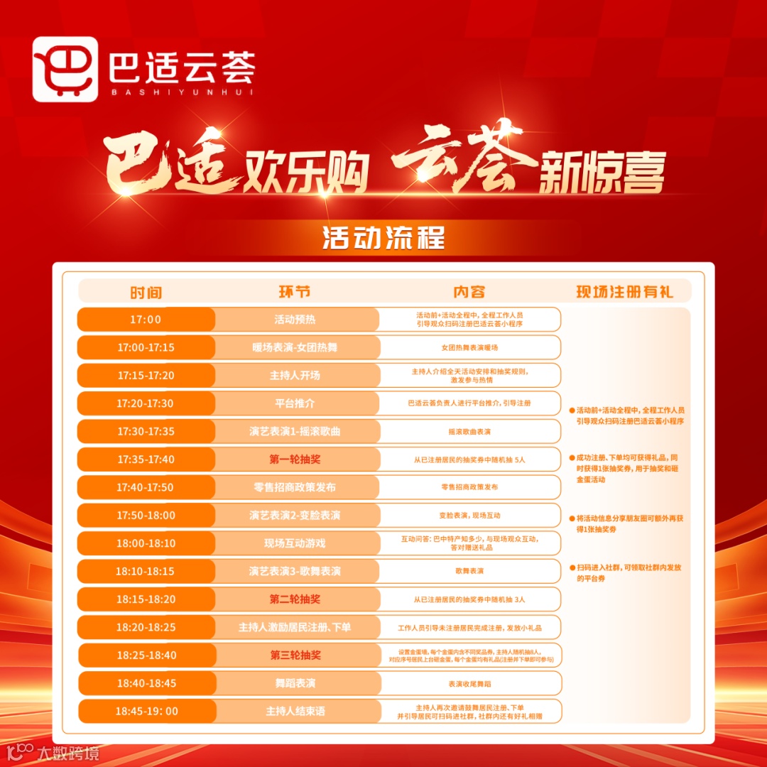 当日注册新用户,在巴适云荟小程序首页“秒杀”板块可享5折秒杀优惠,线下注册用户可额外获秒杀资格券及礼品。