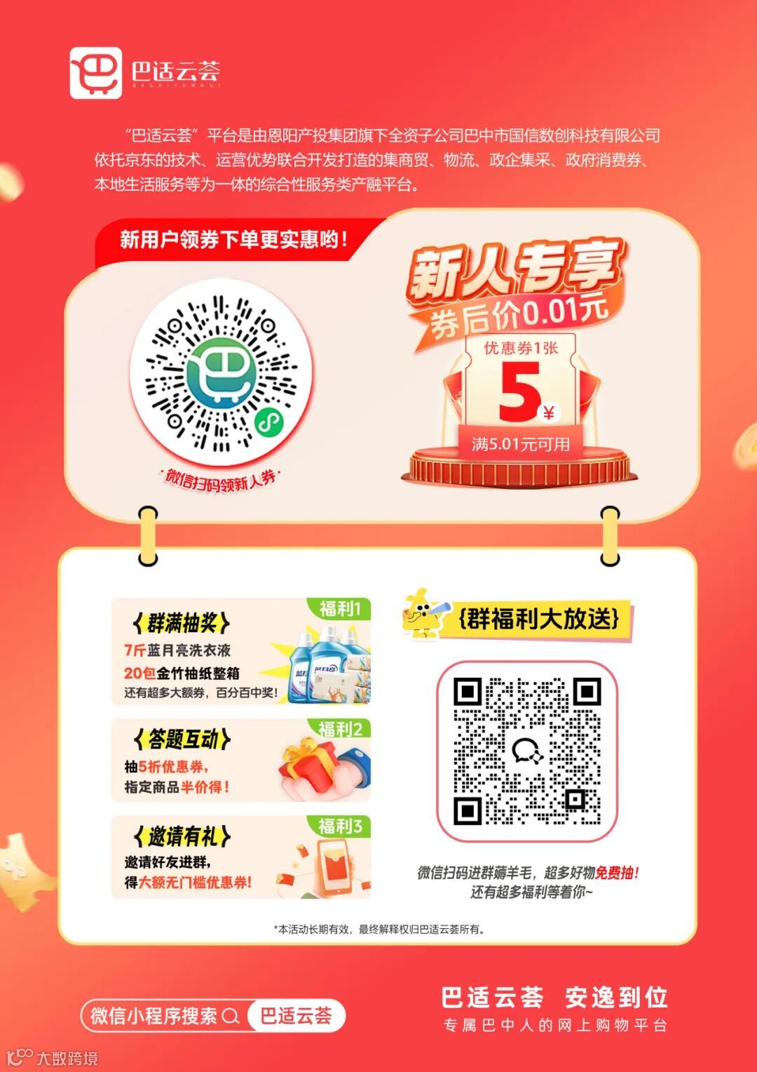 首次在巴适云荟小程序上下单金额满20元即送抽纸(限200份)