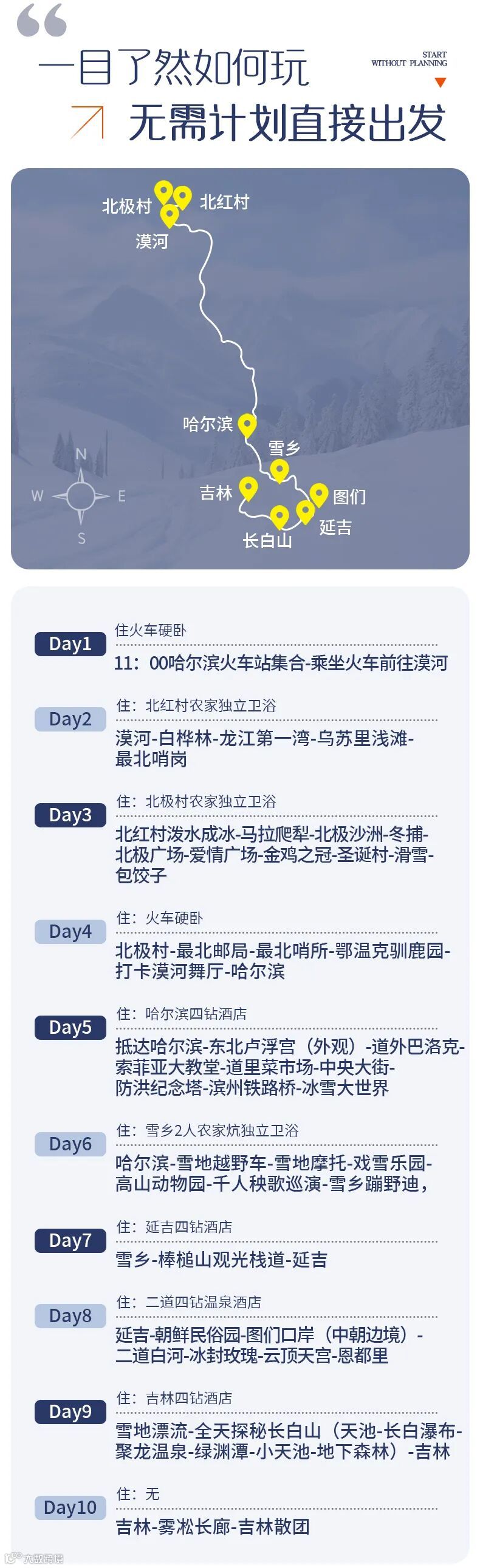 出发地-哈尔滨-漠河