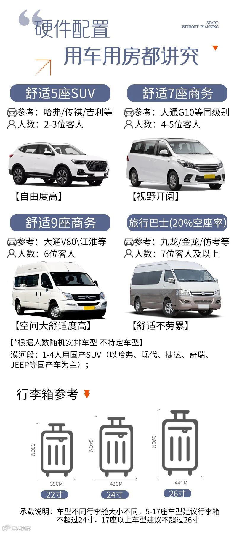 tips:用车仅以客人人数为标准,不包含司机、领队。