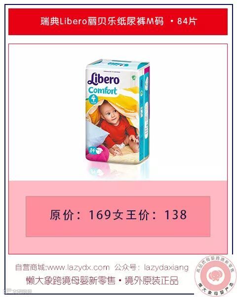 来自瑞典的高品质纸尿裤,一夜一片的超强吸尿能力,得到了懒大象用户的认可和验证。你可能还在买便宜的纸尿裤,一夜两三片,算下来一夜的成本超过3块钱,丽贝乐不到2块一片的价格可以轻松让宝宝过完一夜,助宝宝好睡眠。贾静雯微博多次推荐的高品质纸尿裤为女王的宝宝们放价。