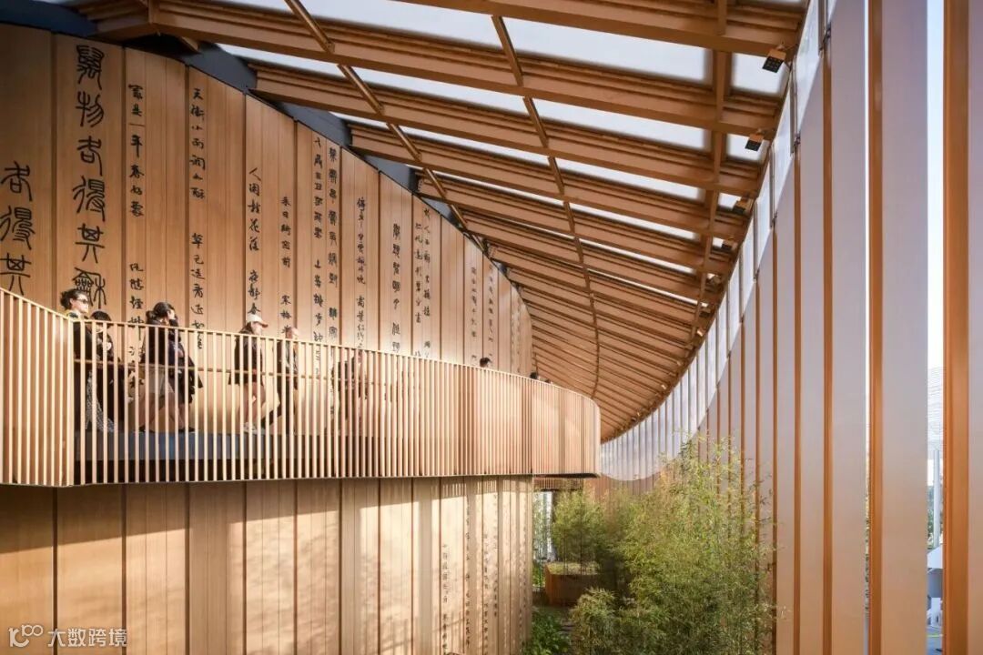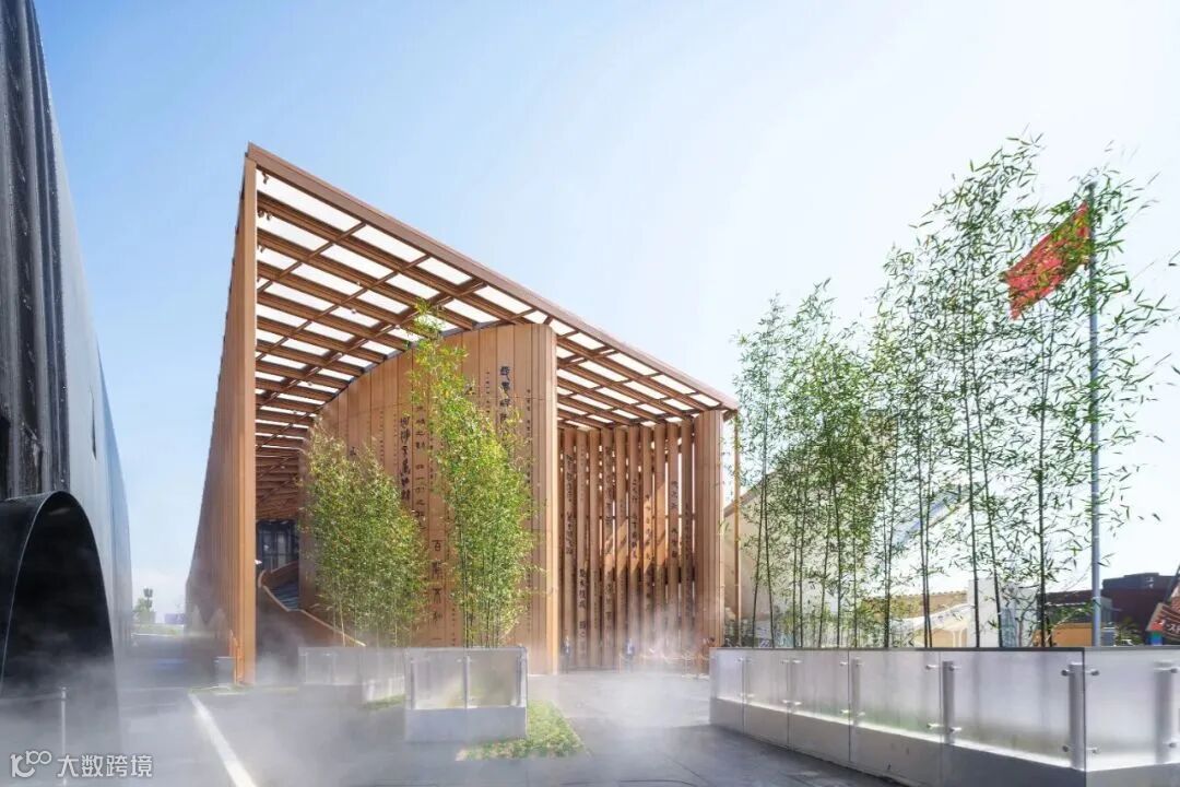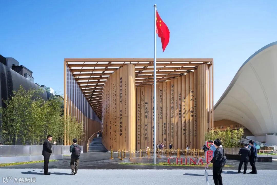 中国馆是大阪世博会最大的外国自建馆之一。由中国工程院院士、中国建科首席科学家、集团所属中国建筑设计研究院有限公司总建筑师崔愷提出“中华书简”设计概念。设计巧妙融合竹子、汉字、书卷等寓意丰富的文化符号,将竹简这个古老的信息传递工具,与当今信息时代的发展结合起来,诉说中华千年历史,展现中国生态文明建设,也诠释了“共同构建人与自然生命共同体——绿色发展的未来社会”的参展主题。