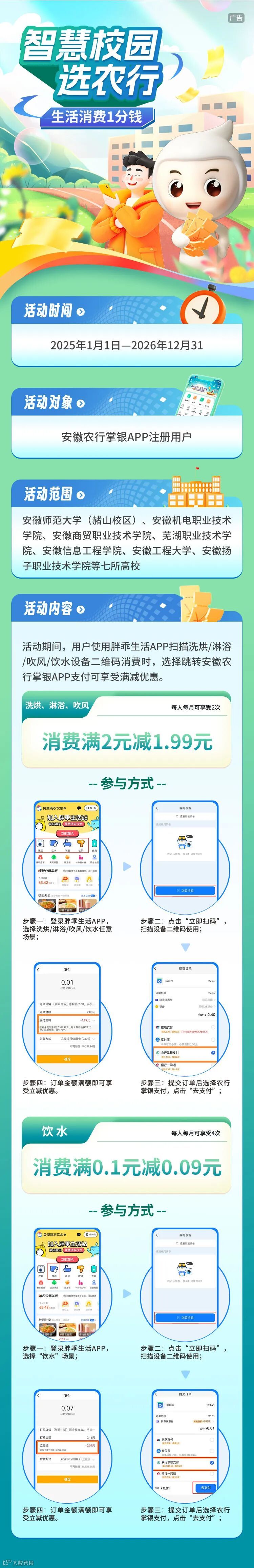 【智慧校园】洗烘淋浴吹风饮水生活消费1分钱
