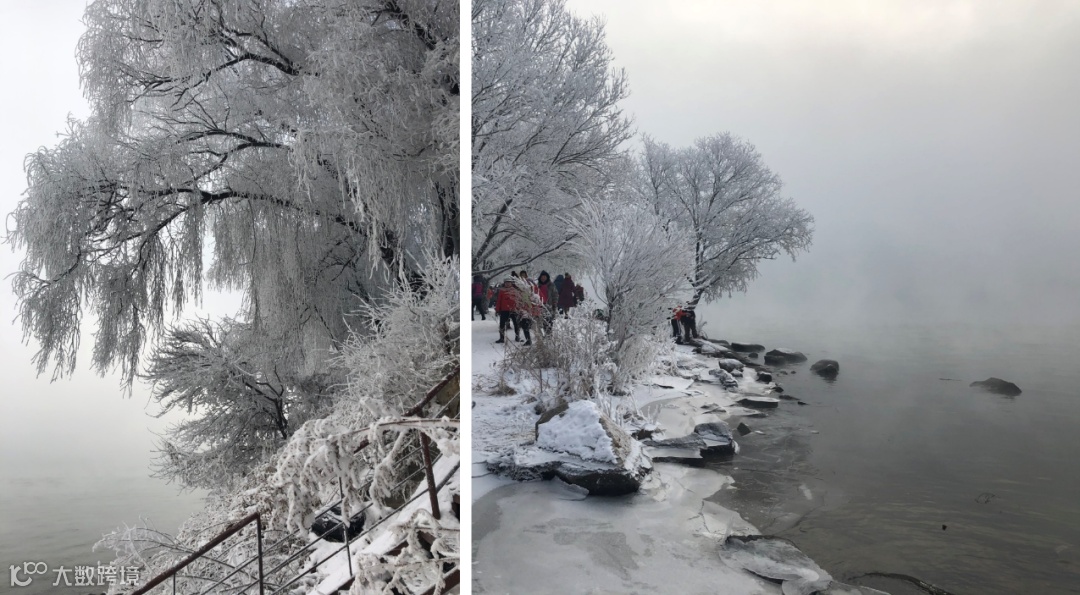 营造响应地域物候的四季景观,因借松花湖之美、雾凇之无争。将原生植物群落组合延申至园区内部,建立与周边自然融合的植物群落,将园区自然融入松花湖的山水之中。最大限度保护原生树木,这不仅是对场地自然印记的尊重,更是对场所记忆与时间痕迹的延续。对江滩岸坡进行保护与生态修复,在营造自然生态群落的同时,选择枝条纤细密集、耐寒性强的本土落叶乔木,便于雾滴附着,形成冰晶树挂效果,利于营造雾凇特色景观。