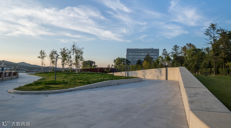 对现场的厂房框架、工业机组、老坝混凝土砌块等进行展示和再利用,通过室外展陈、转化为景观构件等方式对工业遗产进行利旧和艺术提升。景观铺装和花池等材料采用丰满大坝独有的高寒混凝土工艺,有效解决高寒地区景观混凝土材料温控防裂等问题。