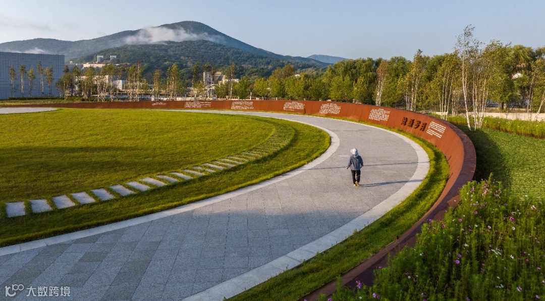 依托松花湖独特的山水格局与自然资源,园区整体嵌入东北广袤的山水之间。优质的自然本底、各异的建成元素、多元的使用功能给设计提出了新的挑战。如何使新建景观与大山、大江、大坝的宏大尺度相协调,又能统领不同风貌的景观元素,同时还能铭记丰满建设精神,成为设计的主要切入点。