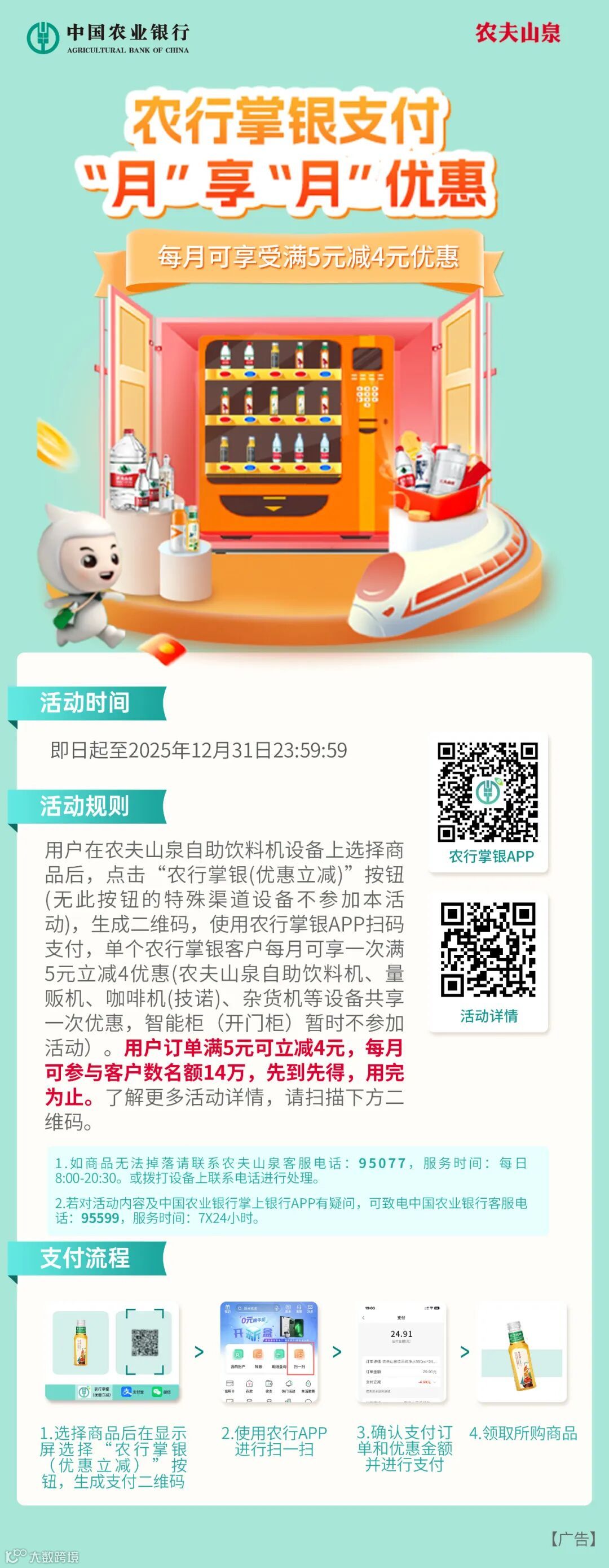春暖花开,踏青趣玩!农夫山泉掌银支付满5元立减4元