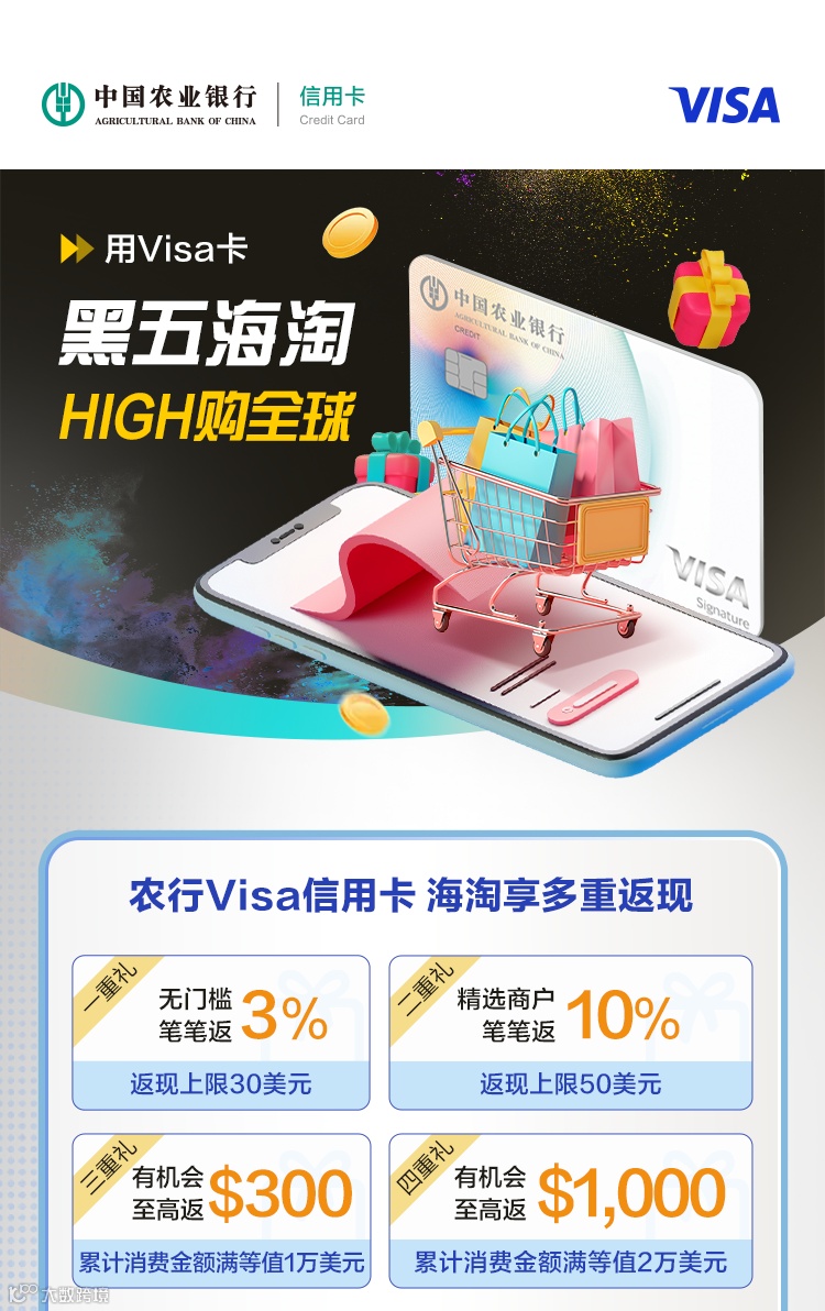 【出境特惠】农行Visa信用卡,黑五海淘钜惠来袭!