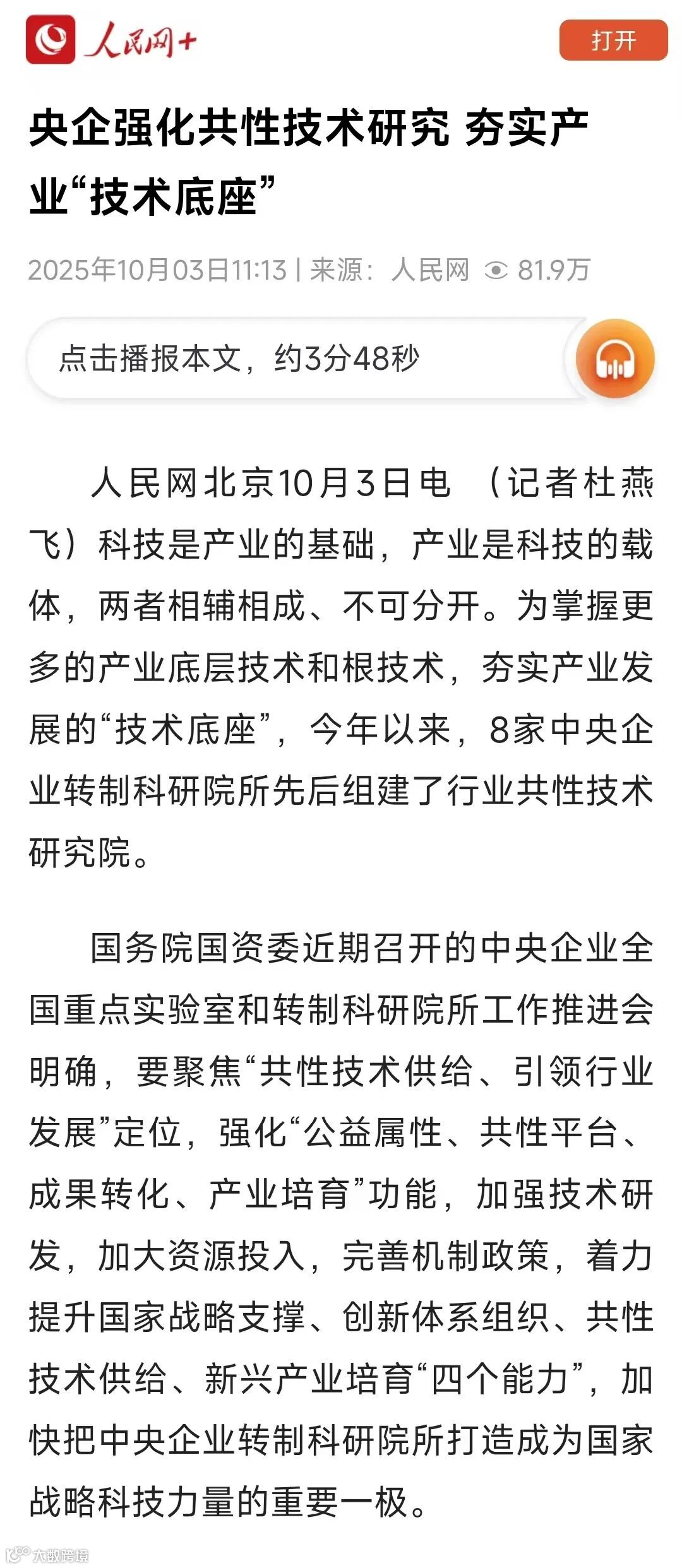 【10月3日发布】央企强化共性技术研究 夯实产业“技术底座”