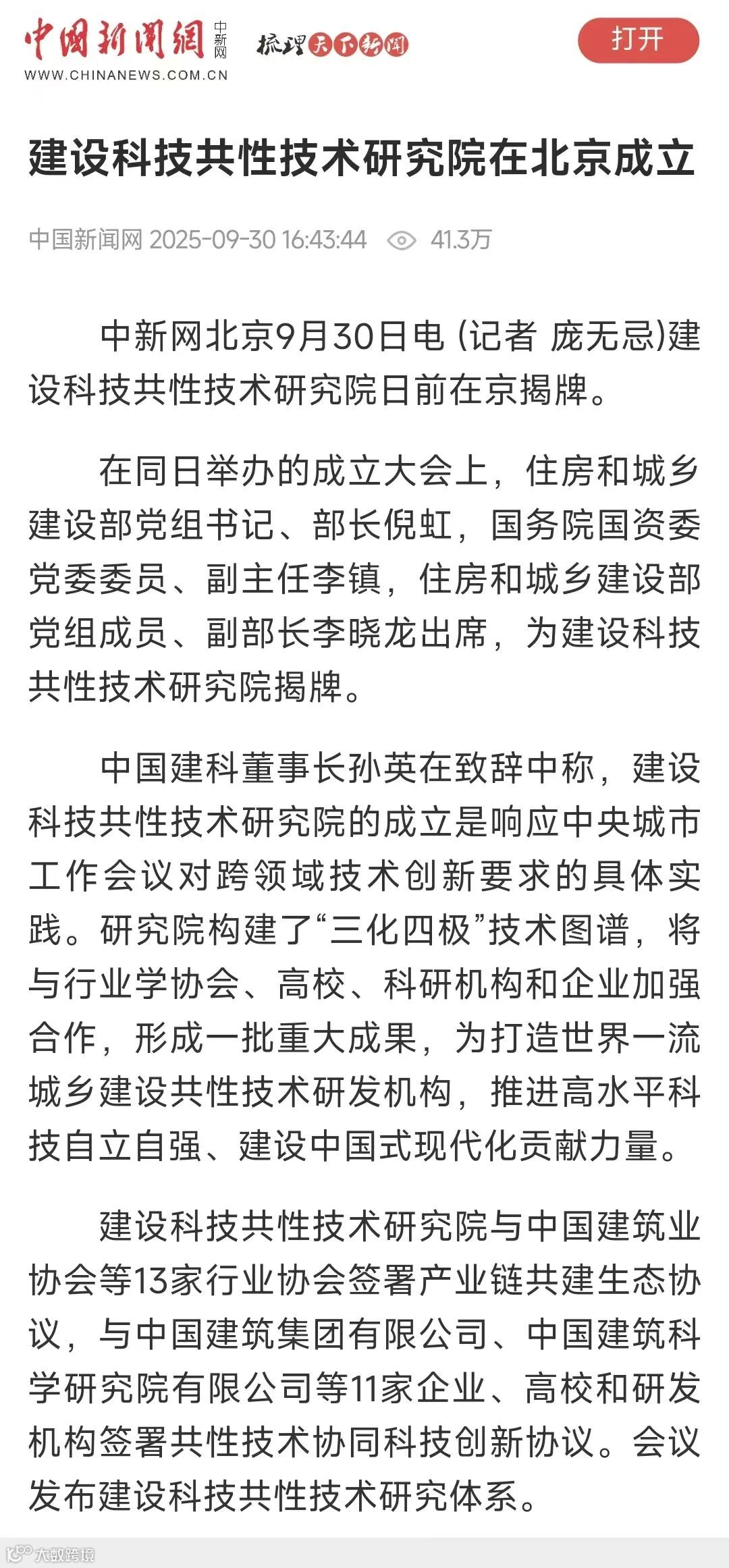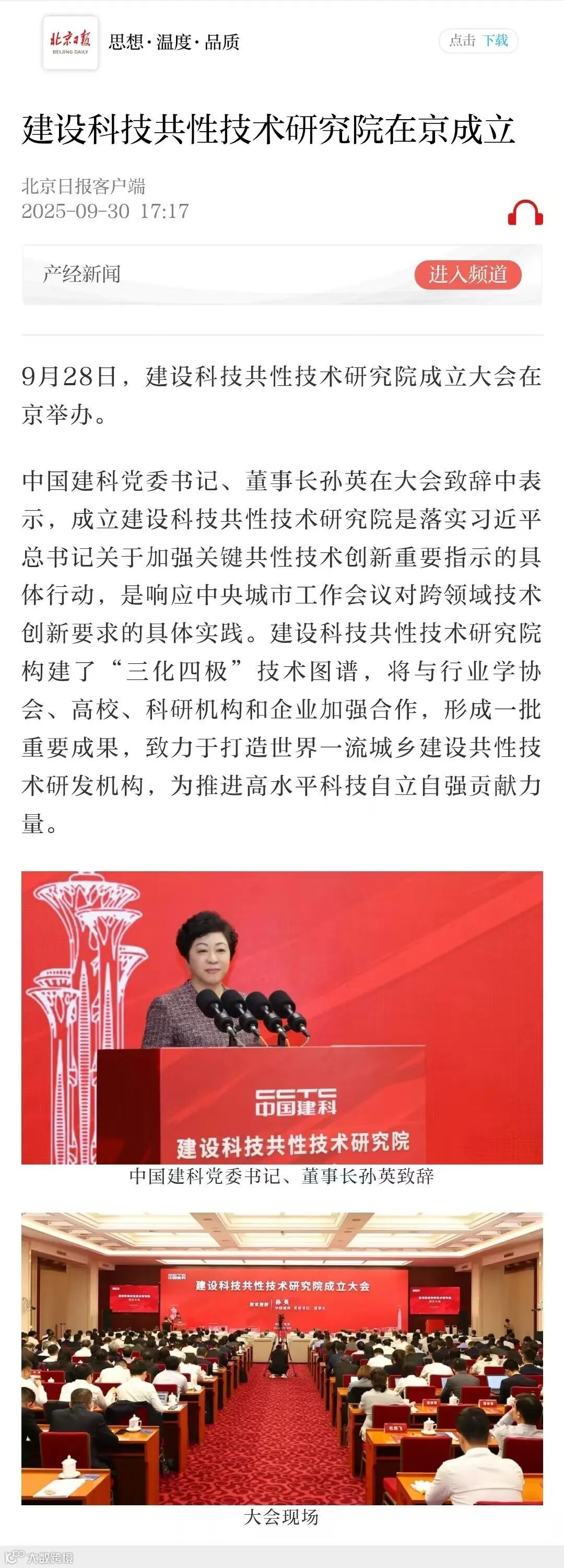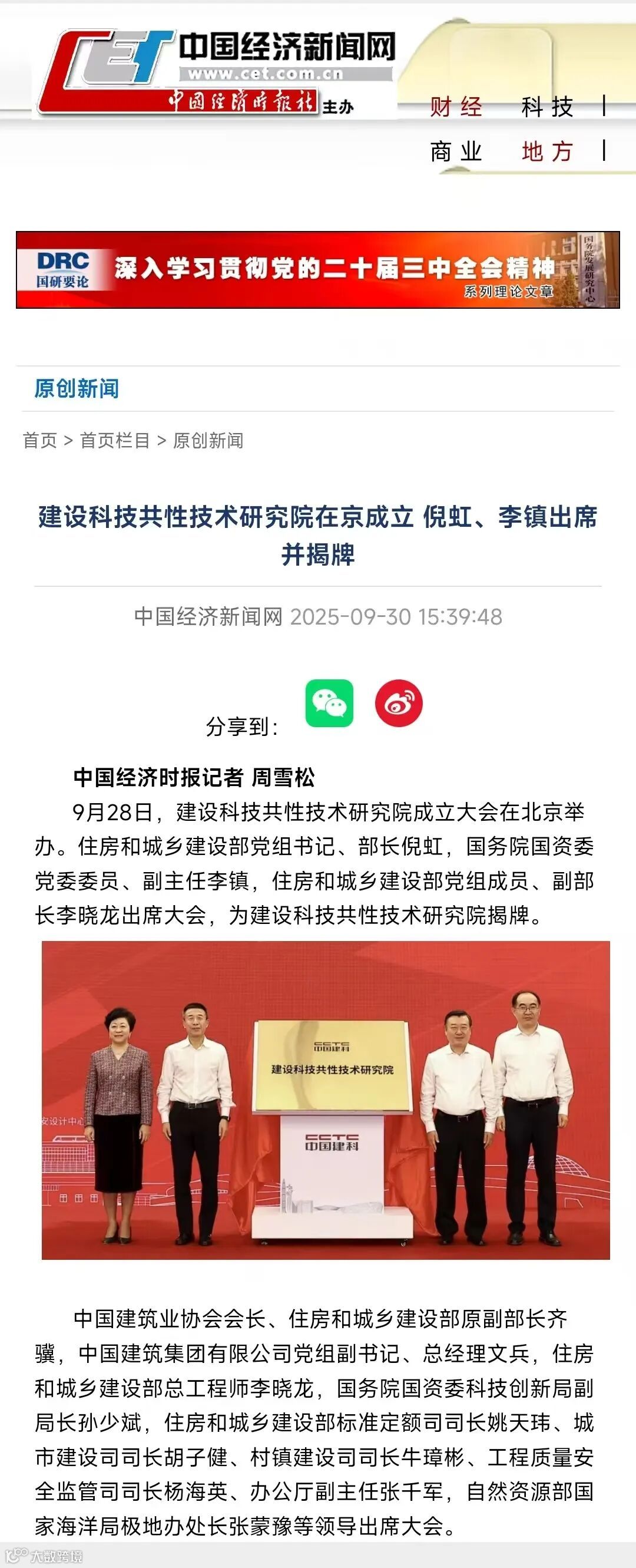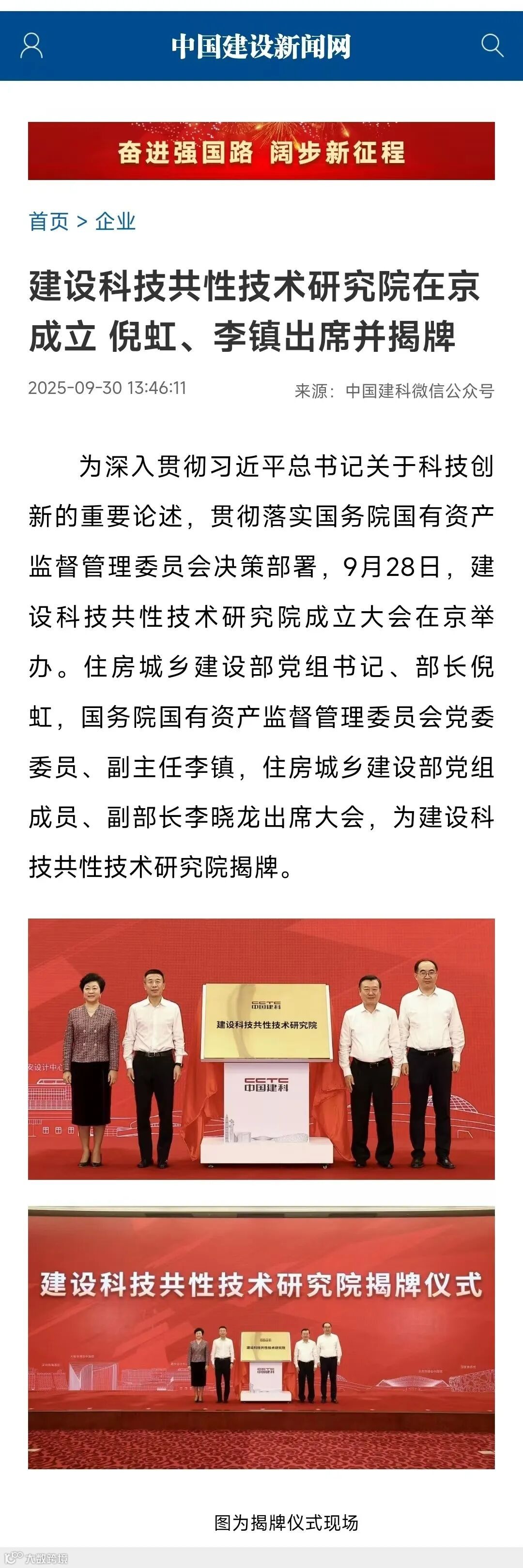 【9月30日发布】建设科技共性技术研究院在京成立 聚焦“好房子”等八大任务