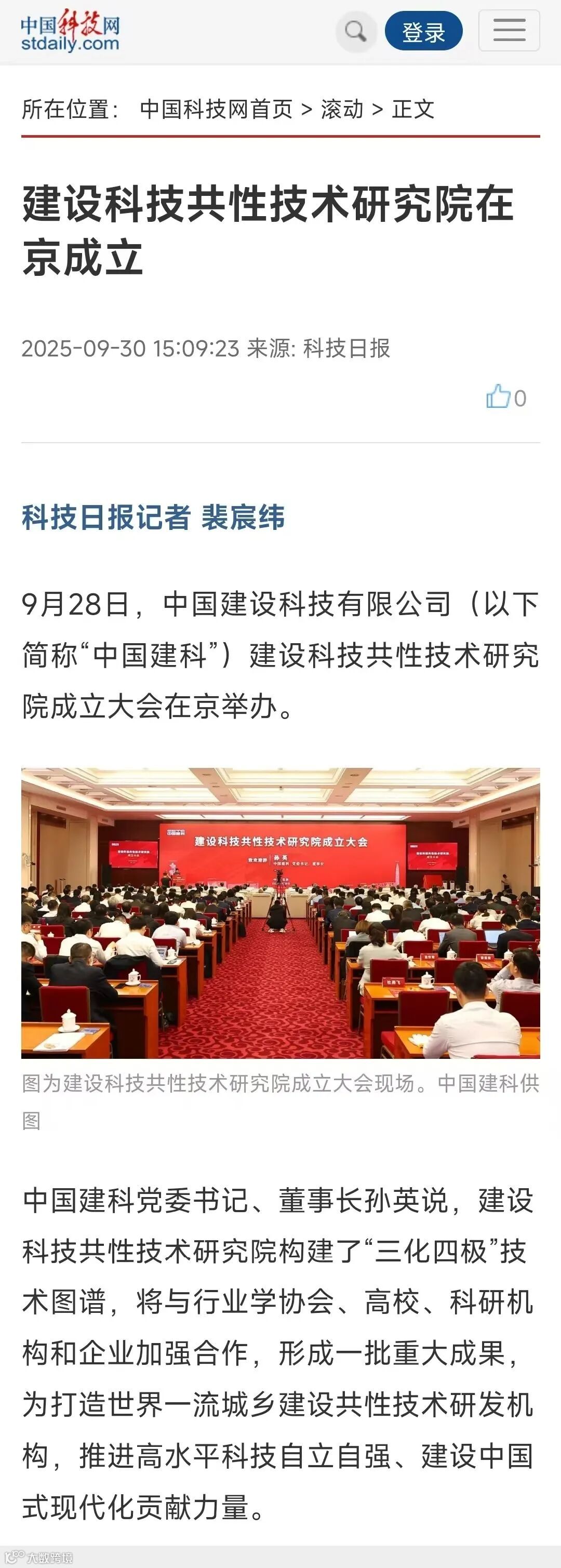 【9月30日发布】建设科技共性技术研究院在北京成立
