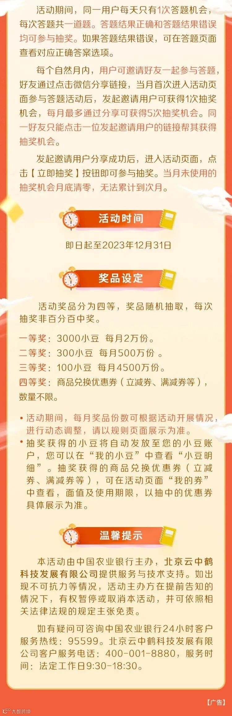 【小豆乐园】掌银@您,每日答题最高可抽3000小豆!