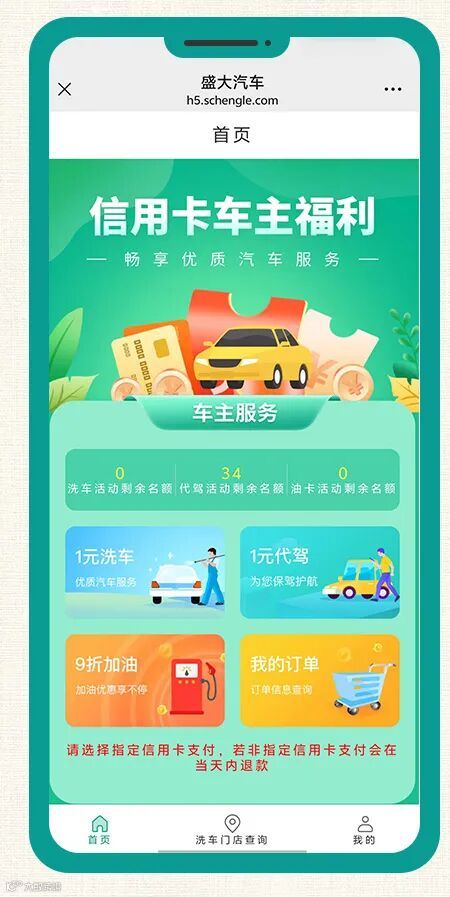 4、以上权益由上海盛世大联汽车服务股份有限公司提供。服务过程中如遇任何问题,请拨打服务热线:洗车、加油服务热线:4008881768(07:00-20:00);代驾服务热线:4008801768-3(00:00-24:00)进行咨询。