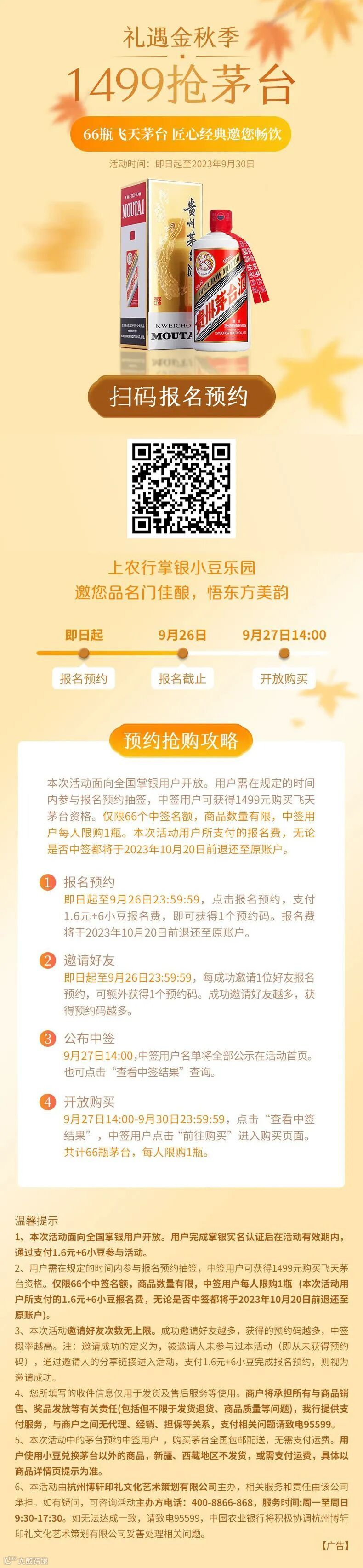 【预约抢购】礼遇金秋季,1499抢飞天茅台!