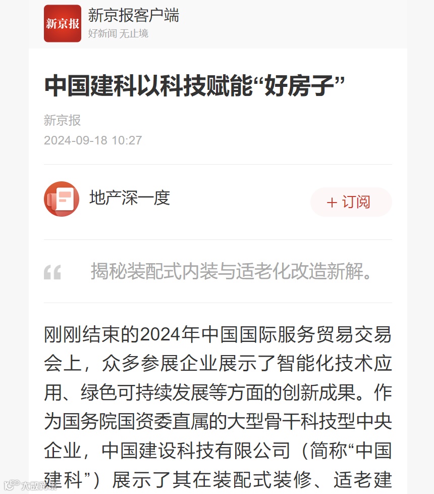 中国建科装配式装修中的全流程控醛技术、高隔音隔墙技术、电气管线分离技术等以及适老建筑的系列改造方案无不践行着“好房子”的理念。