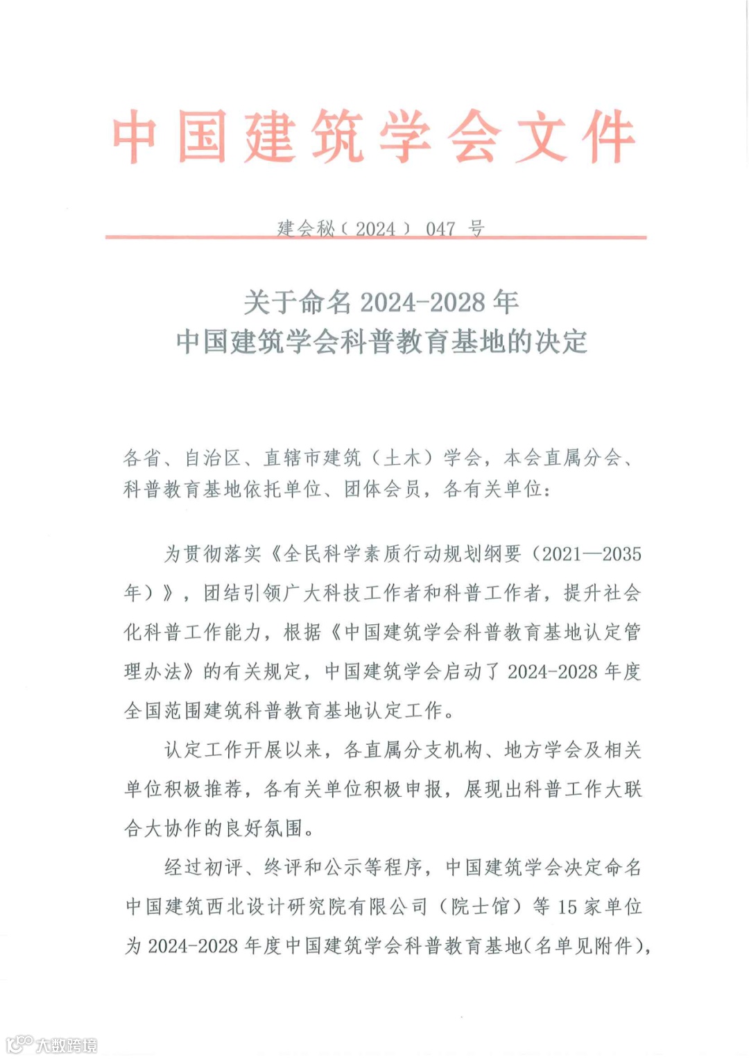 近日,中国建筑学会公布了“2024—2028年中国建筑学会科普教育基地”名单,中国建科所属中国建筑标准设计研究院有限公司北京国标建筑科技有限责任公司(简称国标科技)“好房子”装配式家装展厅被命名为中国建筑学会科普教育基地。