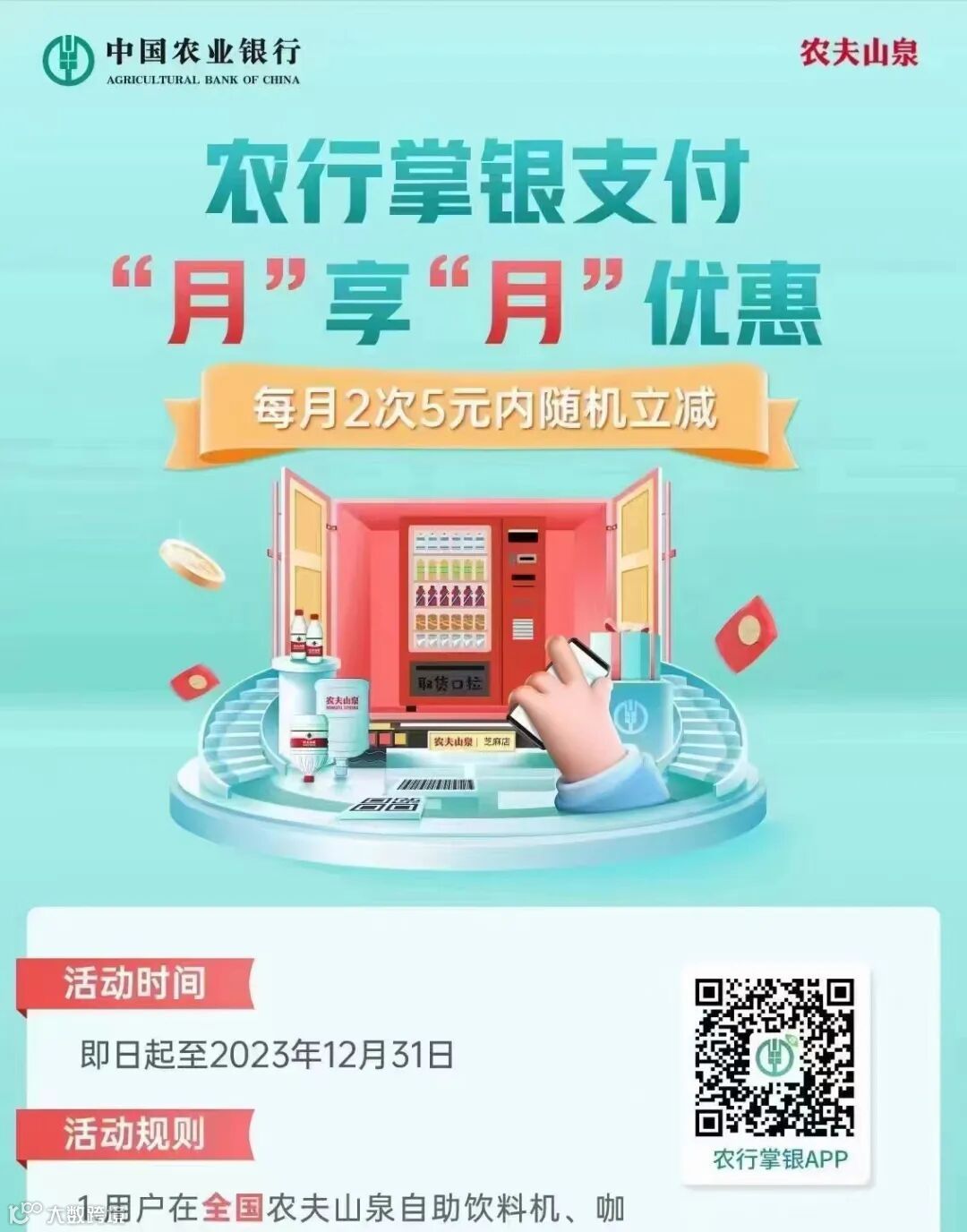 【农夫山泉】最高立减5元!农行请您喝水啦~