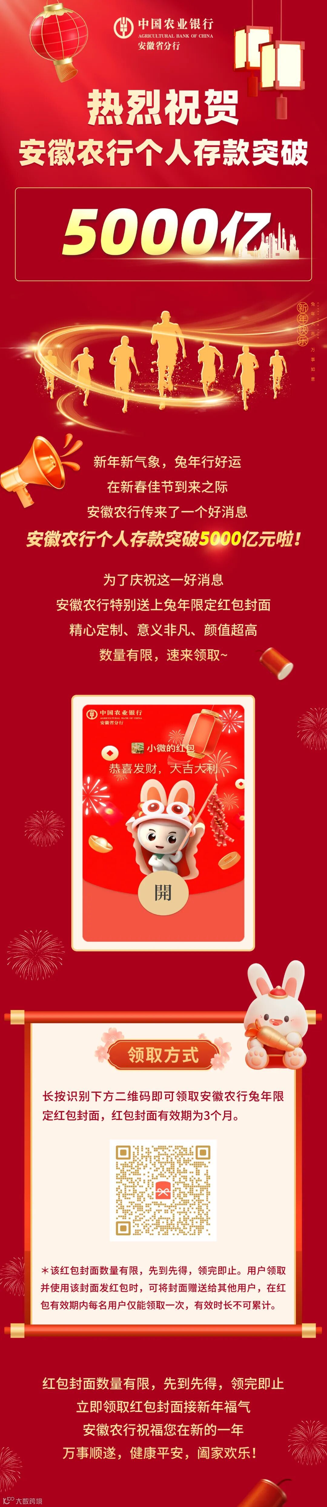 安徽农行个人存款突破5000亿,8万红包封面大派送~