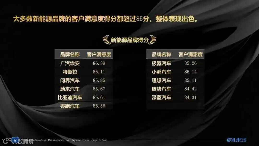 作为榜首的广汽埃安,得分较去年进一步提升,并且还荣获“年度售后服务卓越典范品牌”,这直接体现出广汽埃安在用户服务上的持续优化。这也印证了其从“提供高性价比产品”向“创造可持续用户价值”的战略转型。