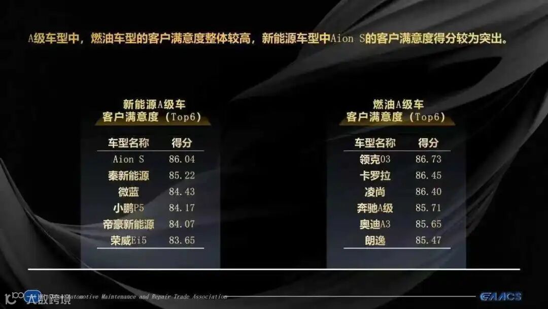 Recently, the China Automotive Maintenance and Repair Trade Association released the "2025 Automobile After-Sales Service Customer Satisfaction Survey (CAACS Survey)". This survey covers 38 passenger car brands and 185 models. In the new energy brand customer satisfaction ranking, AION ranks first among all brands with a score of 86.39; in terms of models, the Aion S and Aion Y won the first place in new energy Class A cars and new energy SUVs respectively.