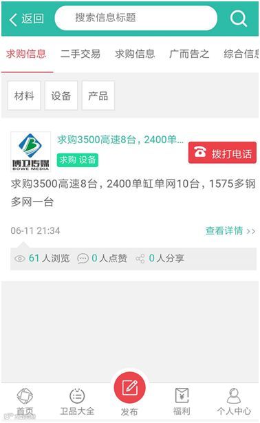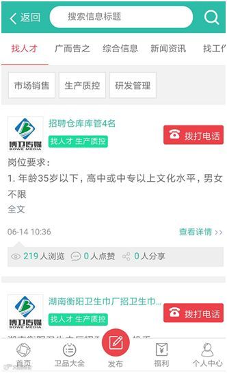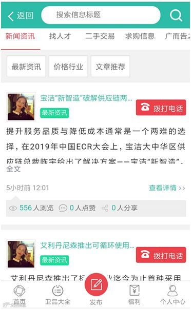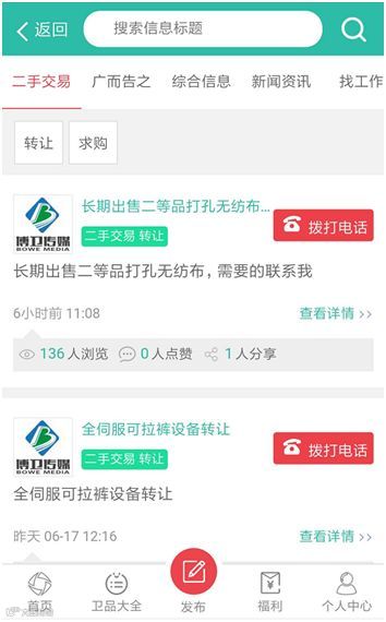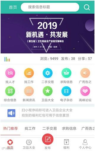 卫观圈,作为博卫传媒精心打造的一款专属卫品行业的小程序,致力于为行业客户提供全方面的功能服务。程序虽小,却“五脏俱全”,汇集了求职招聘、二手买卖、求购推广、最新资讯等方方面面的内容。