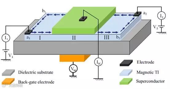 张首晟团队提出的搜寻马约拉那费米子的实验平台:由量子反常霍尔效应薄膜和普通超导体薄膜组成的混合器件。