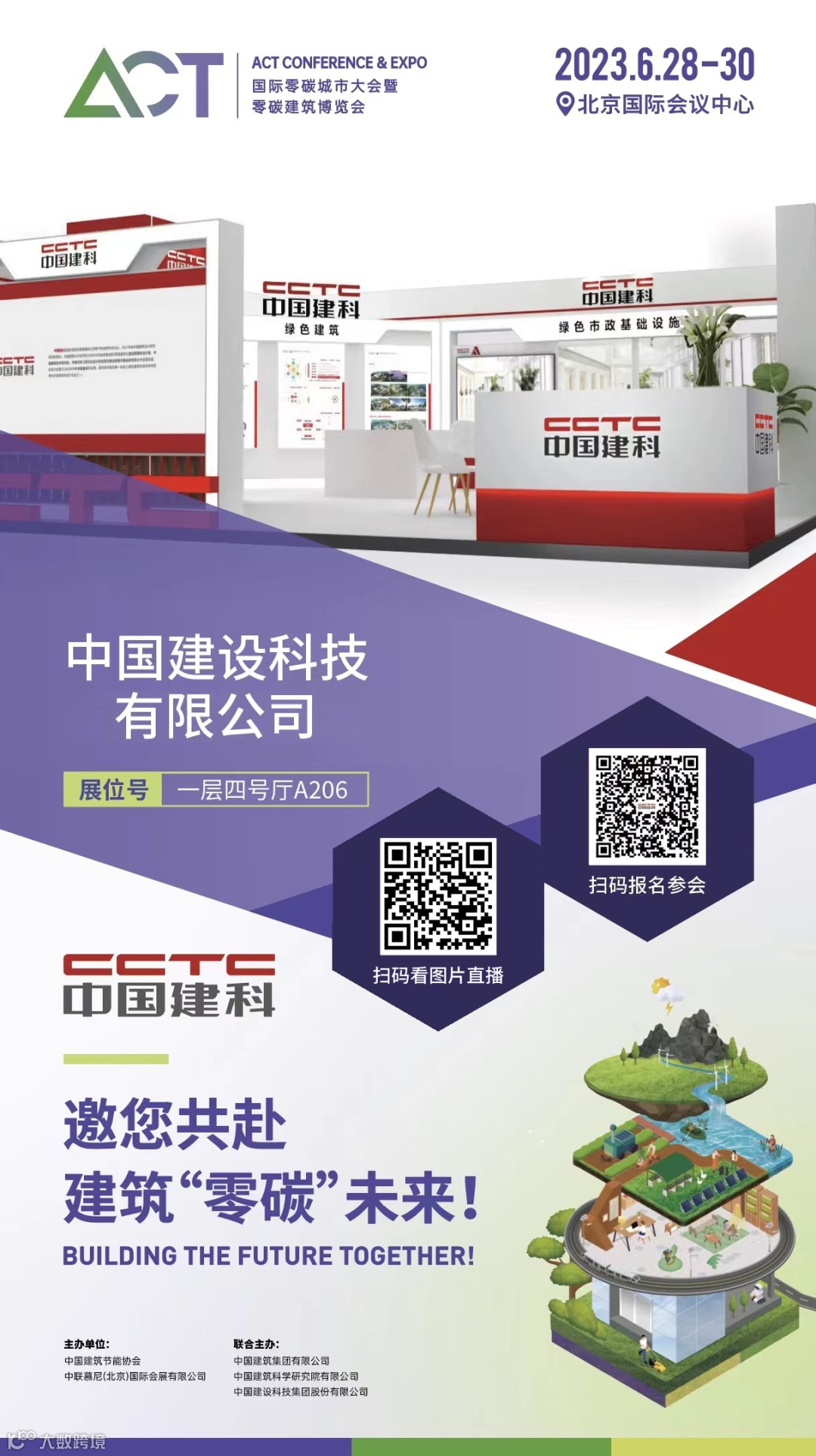 由中国建筑节能协会等主办、中国建设科技集团股份有限公司(简称中国建科)等联合主办的ACT2023(首届)国际零碳城市大会暨零碳建筑博览会(简称ACT大会)将于2023年6月28日—30日在北京国际会议中心举办。中国建科携所属中国建筑设计研究院有限公司、中国市政华北设计研究总院有限公司、中国城市建设研究院有限公司、中国建筑标准设计研究院有限公司、中国城市发展规划设计咨询有限公司和中城院(北京)环境科技股份有限公司亮相ACT大会,分享绿色、低碳、生态技术成果,展示最新技术实践。