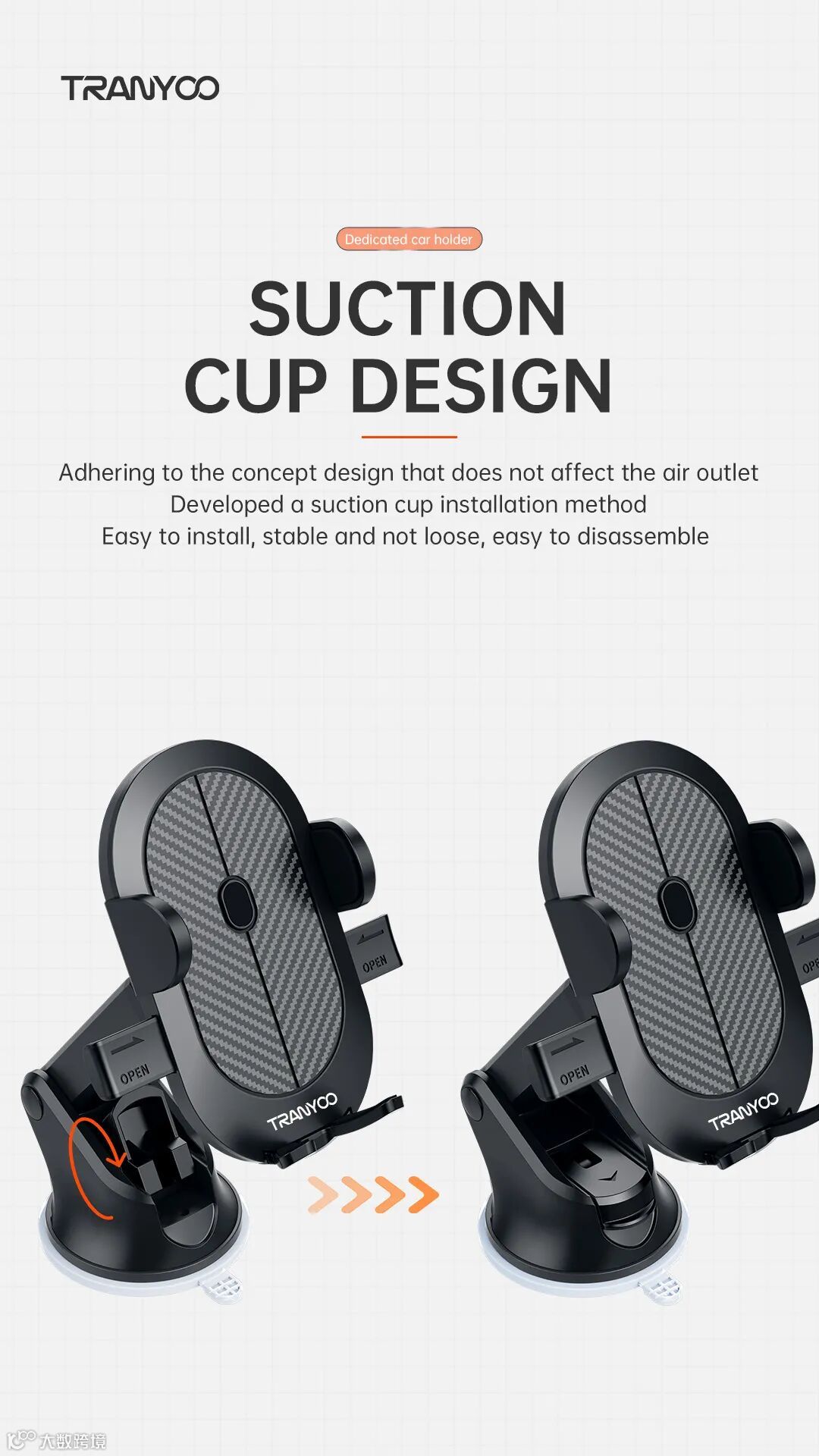 1. The sucker at the bottom of the bracket is fixed and installed conveniently, quickly and firmly without falling off