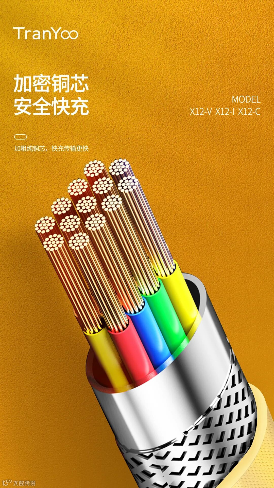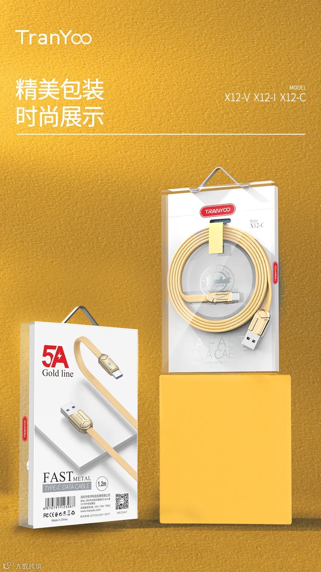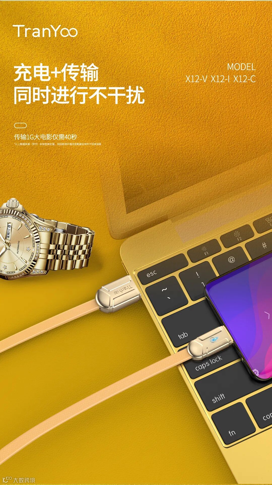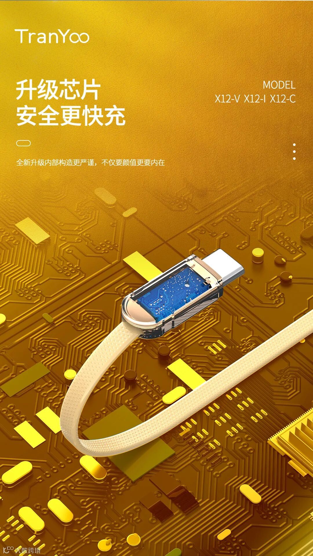 导读:土豪金端口 自带指示灯 | X12 黄金甲带灯5A数据线
