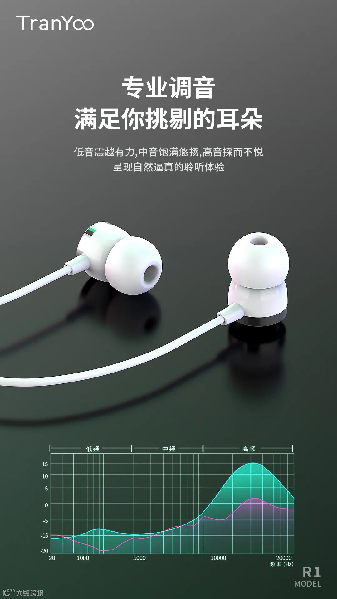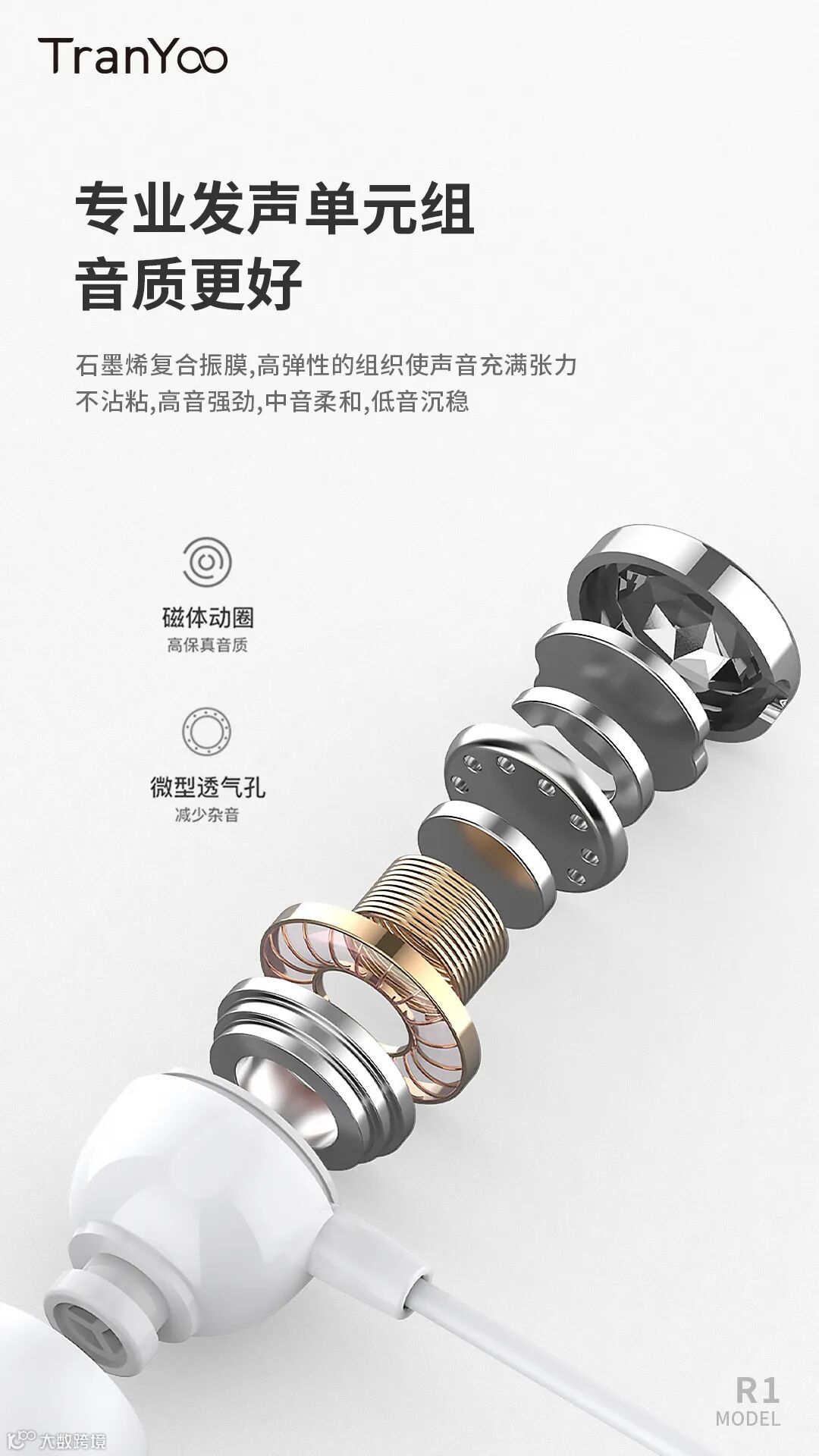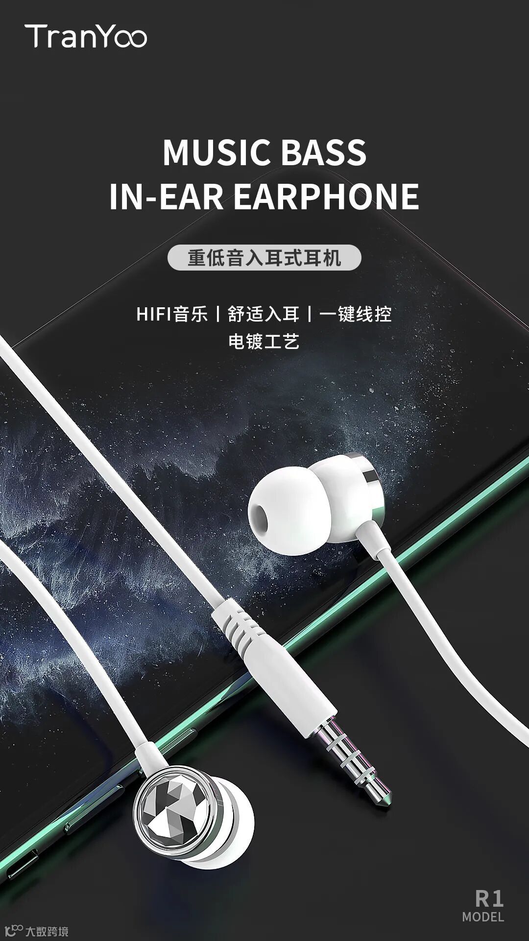 导读:电镀工艺 震撼音效 | R1 重低音入耳式耳机
