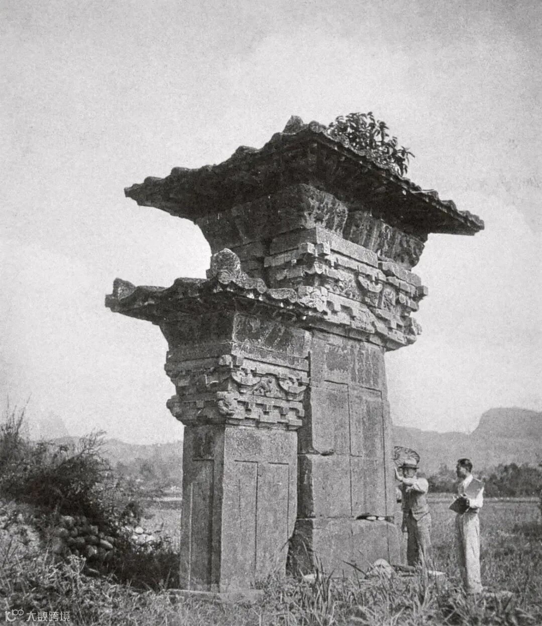 ▲梁思成、陈明达测量雅安高颐阙之二
