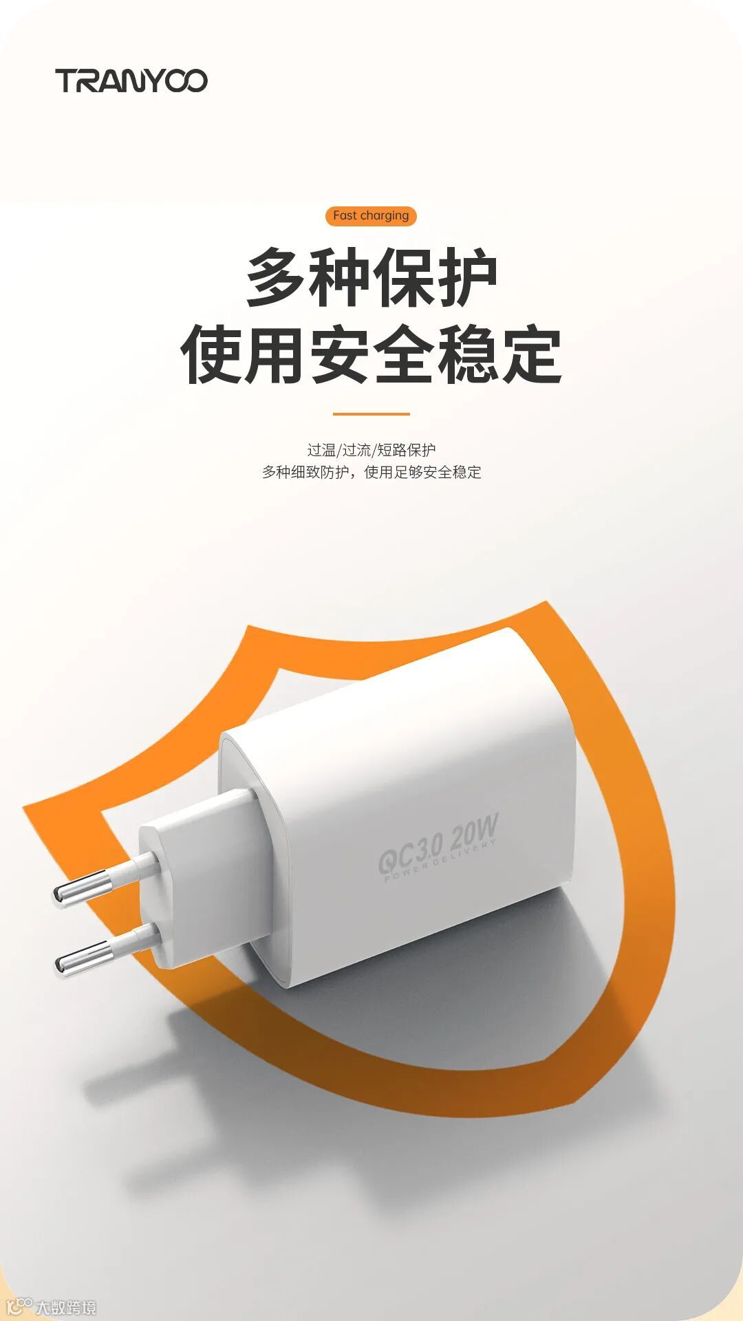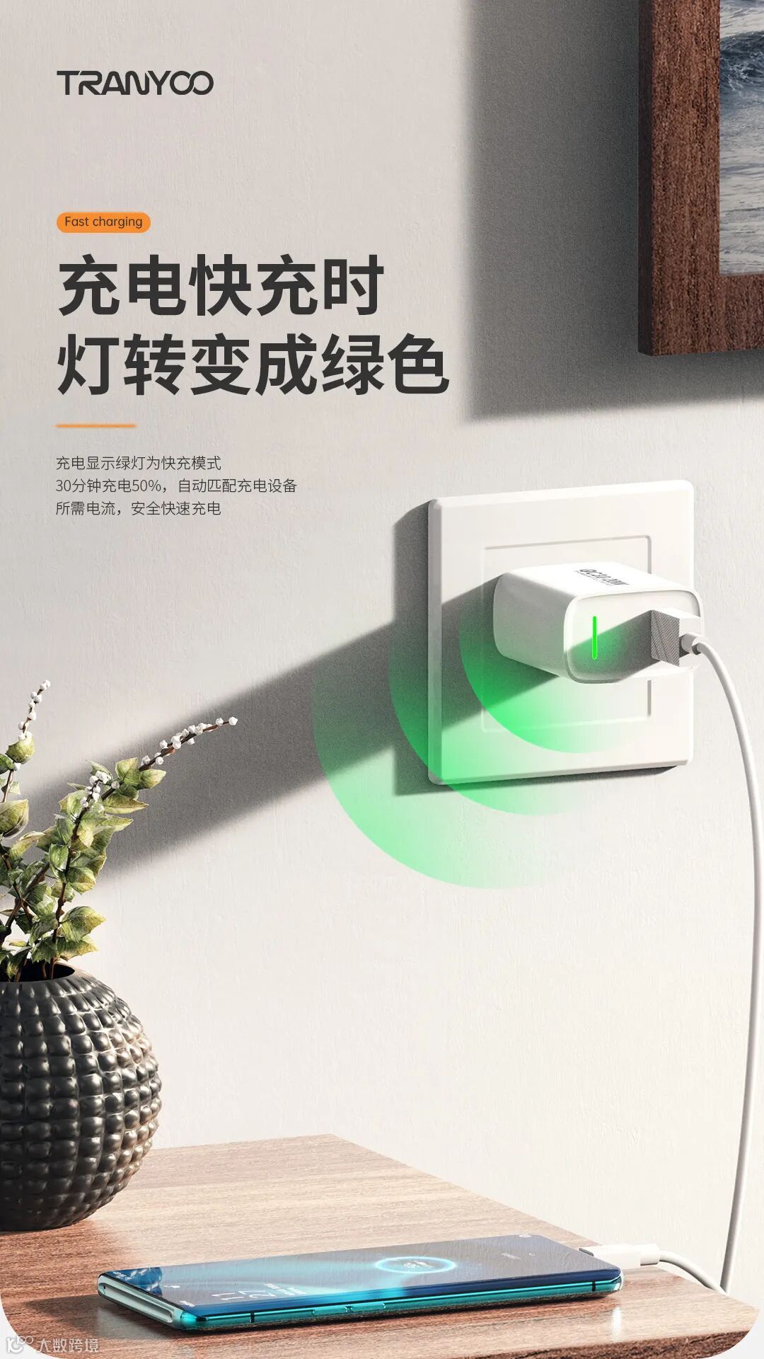 1.带显示快充转灯,快充灯变成绿色2.20W/3.6A 支持 5V,9V,12V自动调节,3.最高可达到3.6A输出支持三星,华为,vivo,小米等高通QC3.0方案手机快速充电