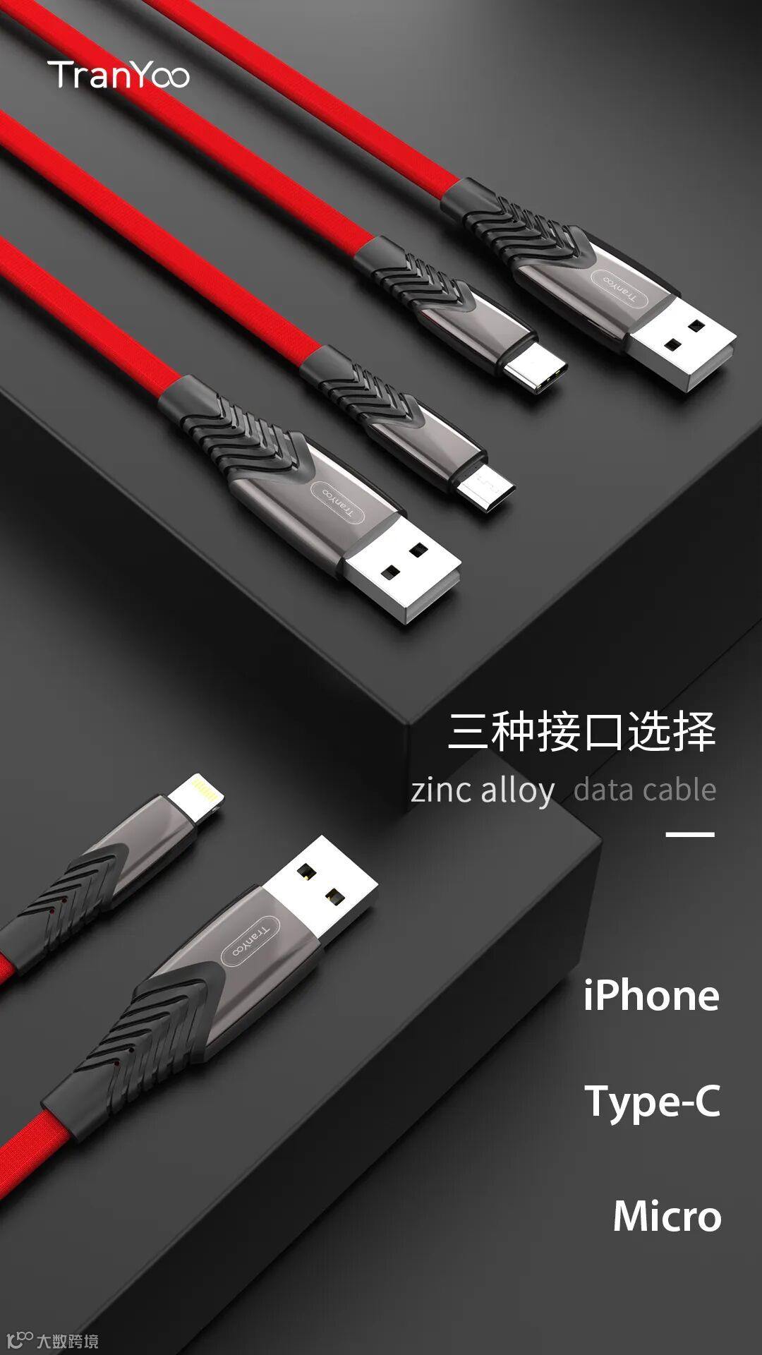 4.Micro,iPhone,TYPE-C三种接口,满足市场不同需求