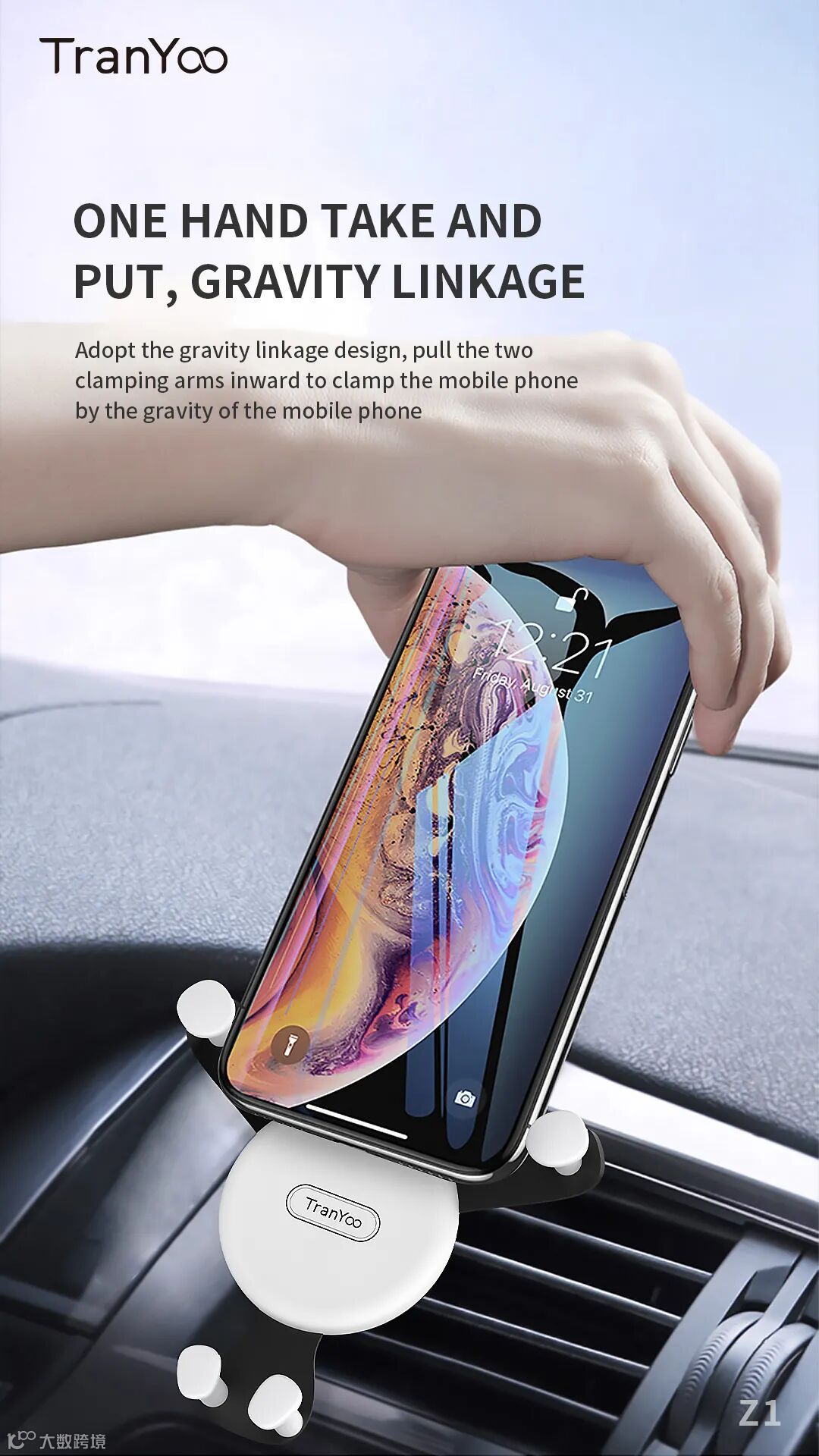 1. It adopts the gravity linkage design, and the mobile phone is clamped automatically when put, which can be put in one hand