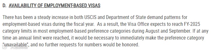 然而,令人欣慰的是,在2025财年(截至2025年9月30日)剩余的排期公告中,新法EB-5签证预留类别,仍以"无排期"的优势顺利挺过。