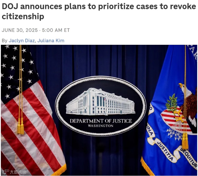 除了撤销绿卡之外,美国司法部也在近日宣布,将针对归化入籍的公民加大审查力度,优先处理撤销国籍的案件。