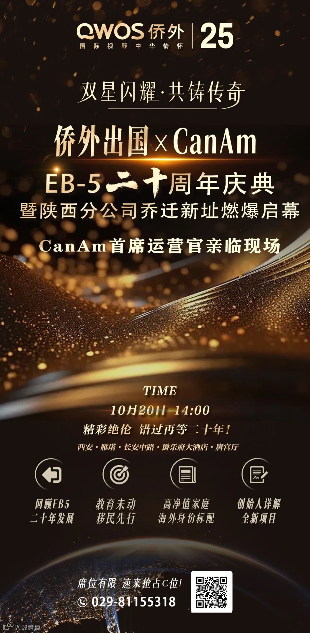 如今,为了纪念这一里程碑式的合作,侨外集团与CanAm将于10月20日起,在北京、上海、广州、深圳、西安等全国五大城市,举办“侨外集团与CanAm:EB-5二十周年庆典”活动。
