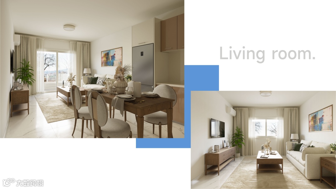 地面精选知名品牌抛釉砖,边角细腻磨边倒角处理,铺贴工艺精湛,彰显雅致美观。配备静音门窗,采用欧洲标准槽口设计,实现卓越密封隔音效果,冬季有效保温,夏季清凉防暑。