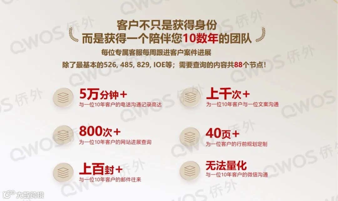 多年来,侨外出国之所以能持续引领行业,得益于其别具一格的核心竞争力——侨外拥有的项目、文案、客服、顾问以及专家等五大团队,让客户的移民之路更安心、顺心。