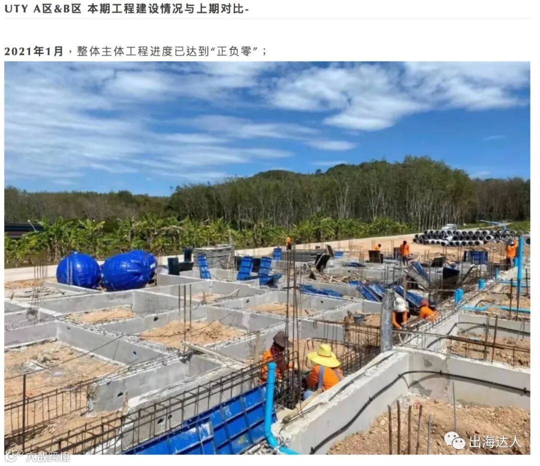 通过最新视频和照片可以看到,UTY项目在这个月,A区和B区别墅的地面模版施工已经完毕;B区的部分别墅已安装别墅的主体梁;在这一个月内,UTY项目的施工建设情况是十分快速的;