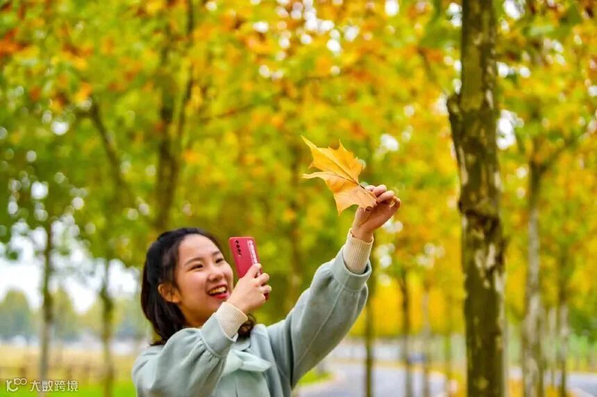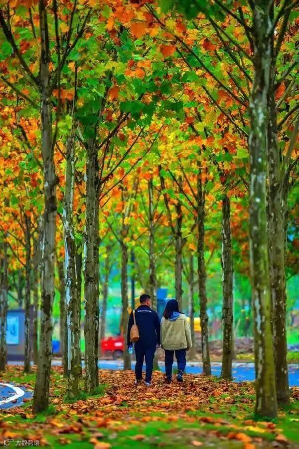 广阳岛上梧桐树叶正由绿转黄,一条金色大道蜿蜒在广阳岛深处,美不胜收。郭旭 摄