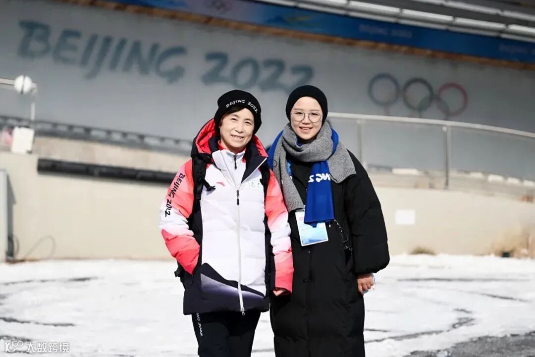▲ 张玉婷(右)与冬奥组委媒体运行部陈煜部长在国家雪车雪橇中心