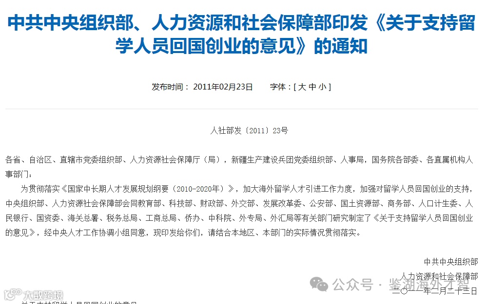 我国政府高度重视海外留学人员归国工作,并出台了一系列政策措施,以鼓励和支持海外博士等高层次人才回国发展。今天,小编整理出国家层面的相关政策,供大家查阅: