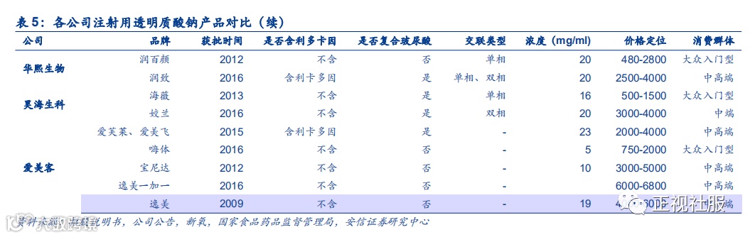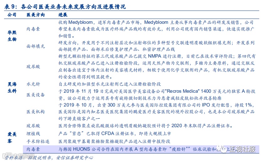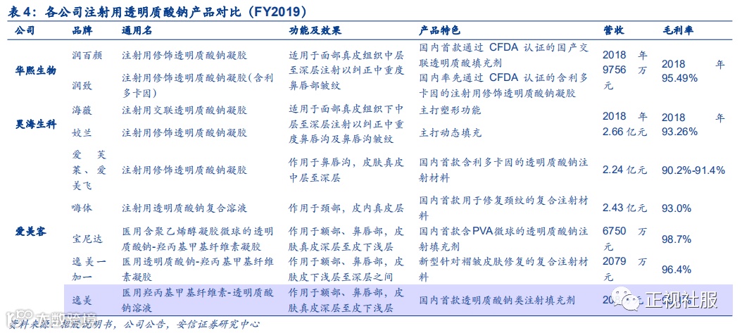 2.医美业务:技术各有千秋,华熙&爱美客产品丰富,昊海渠道协同